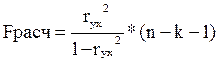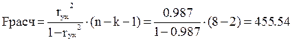 Если при заданном уровне значимости расчетное значение F -критерия с γ1=k, γ2=(п – k – 1) степенями свободы больше табличного, то модель считается значимой, гипотеза о случайной природе оцениваемых характеристик отклоняется и признается их статистическая значимость и надежность.