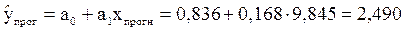 Прогнозируемое значение переменной у получается при подстановке в уравнение регрессии ожидаемой величины независимой переменной х прогн.