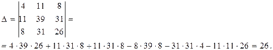 Решение систему по методу Крамера. Вычисление определителя системы: