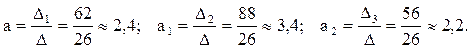 Аналогично вычисляются частные определители, заменяя соответствующий столбец столбцом свободных членов: