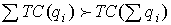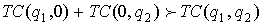 Если мы имеем дело с многопродуктовой фирмой, то надо принимать во внимание субаддитивность издержек. Издержки являются субаддитивными, если они меньше при совместном выпуске нескольких товаров, чем при их отдельном производстве в рамках различных фирм.