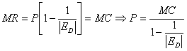 Следовательно, надбавка к предельным издержкам в цене должна быть тем меньше, чем выше эластичность спроса.
