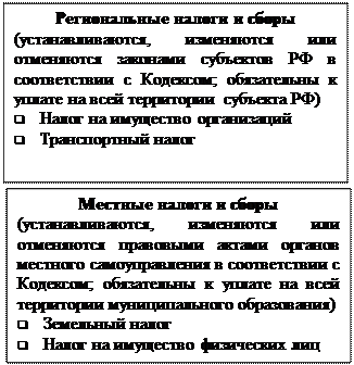 Система налогов и сборов – совокупность федеральных, региональных и местных налогов и сборов: