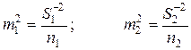 - выборочная дисперсия по первой и второй выборке.