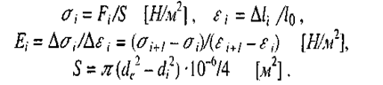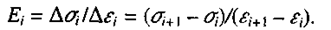 У цій формулі Δσi и Δεiє відповідно зміни напруження та деформації в довільно вибраній точці на діаграмі розтягу або стиснення зразка (див. мал. 1.34).
