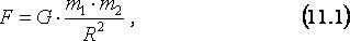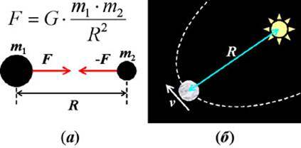где m1 и m2 – массы тел, R – расстояние между ними (см. рис. 11а), а G - гравитационная постоянная, равная 6,67.10-11 Н.м2/кг2.