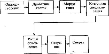 Так, с тадиями жизненного цикла биологических систем являются: оплодотворение, дробление клеток, морфогенез, клеточная специализация, рост и обновление, старение, смерть.