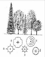 Лесные зеленые массивы и рощи создаются насравнительно больших площадях с размещением деревьев примерно 3х3 м.Обычно это однородные насаждения с добавлением кустарников. Рощи в отличие от лесных массивов имеют декоративную опушку из деревьев и кустарников, резко выделяющихся нафоне основной породы (березовая опушка липовой рощи, клены на фоне березовой рощи и др.).