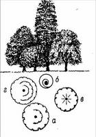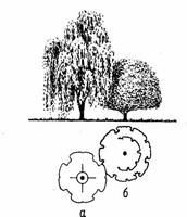 Группа образована 2—3 деревьями, отличающихся друг от друга по форме или цвету кроны, ствола (например, две стройные голубые ели и плакучей формы береза, плакучей формы ива на фоне стройных берез и др.).