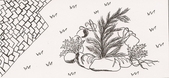 2. Обозначаются места закладки цветников, газонов, зеленых насаждений, а также живых изгородей из кустарников. Подбираются для каждого элемента озеленения подходящие виды лесонасаждений (куртина, группа, одиночное дерево, аллея, бордюр, живая изгородь). На чертёж условными значками (в масштабе 1:200) наносятся проектируемые элементы озеленения. Проставляются расстояния между посадочными ямами в рядовых посадках, размеры траншей под бордюры и живые изгороди.