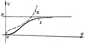 Рисунок 4.1 – Монотонный переходный процесс (1 – устойчивый; 2 – неустойчивый)