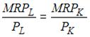 Правило минимизации издержек при использовании ресурсов труда и капитала обеспечивается соотношением предельной производительности труда (