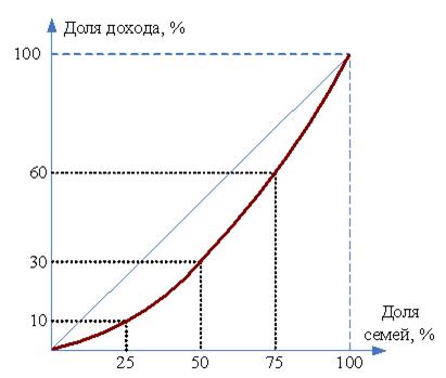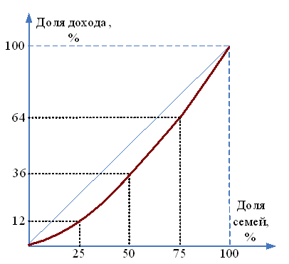 На рисунке представлено распределение суммарного дохода по четырем 25-процентным группам семей – от самой бедной до самой богатой. Чему равен квартильный коэффициент? Ответ обоснуйте.