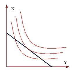 Увеличение номинального дохода потребителя при прочих равных условиях станет причиной появления нового равновесного набора товаров X и Y, в котором будет:
