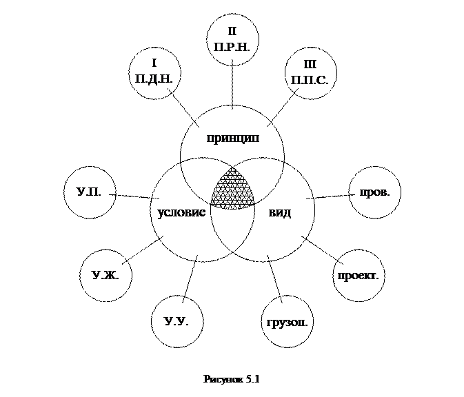 В курсе сопротивления материалов расчет элементов конструкций выполняется по различным условиям с применением трех основных принципов расчета и рассмотрением трех видов расчета. Схематически используемые принципы, условия и виды расчетов можно представить следующим образом (рисунок 5.1):