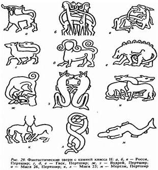 У пиктов были распространены мотивы животного мира. Римский историк III века Геродиан, так пишет про это: «Они татуируют на своем теле не только изображение животных всех видов, но и различные рисунки». Изображение животных возможно служили и как тотемы для того или иного племени. Также эти животные были и персональными тотемами того кто их наносил. Таким способом воин хотел приобрести необходимые качества, которыми обладал тот или иной зверь. Так в городе Бурхеде, было обнаружено примерно 30 различных изображений быка.