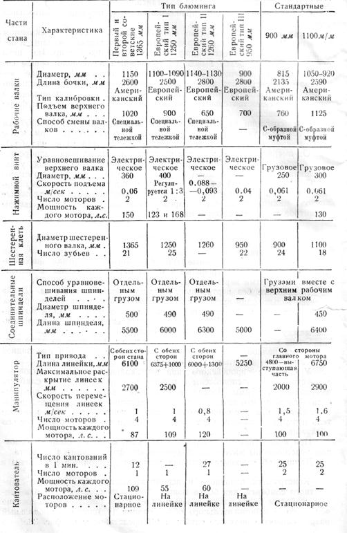 У слябинга европейского типа вертикальные валки и кантовальное устройство расположены с передней стороны стана, у слябинга американской фирмы Места — вертикальные валки сзади, а кантователь— спереди, что затрудняет манипулирование стана. У стандартного слябинга, как и у первого советского, вертикальные валки, кантователь и пульт управления расположены спереди стана, что облегчает его обслуживание.