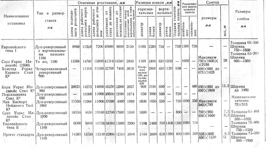 Данные об основных размерах различных слябингов приведены в табл. 2.