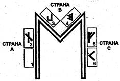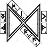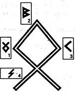 Расклад проводится по схеме, напоминающей форму руны Лагуз (рис. 24). Он прорицает исход любых противостояний, условно— «коррид».