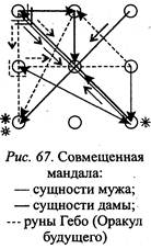 На рис. 67 представлена совмещенная мандала сущностей дамы, ее бывшего мужа и руны Оракула будущего Гебо. Совмещенные мандалы можно отнести к мандалам данности, они представлены на рис. 68 и 69.