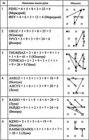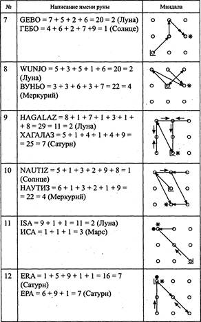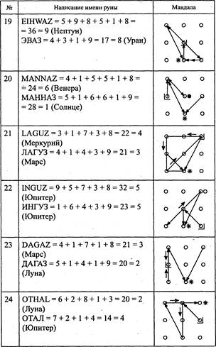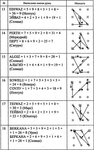 Примечание. В мандалах рун, перевернутых в раскладе, направление энергетических потоков противоположно прямым позициям рун. При сравнении мандал рун латинского и русского написания существенных изменений не выявлено.