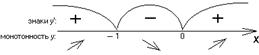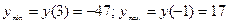 Вычисляя значение функции в точках экстремумов, находим экстремумы функции и строим схематически график: