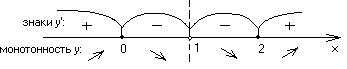 возрастает при хÎ(-¥;0) и (2;+¥),