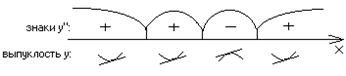 график выпуклый при xÎ(–¥; 1) и xÎ(3; +¥), график вогнутый при xÎ(1; 3).