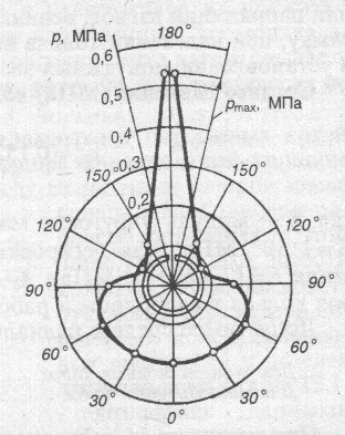 Для надежного уплотнения и хорошей приработки давление кольца на стенку цилиндра в различных точках окружности (Р, Мпа) должно изменяться по эпюре (рис. 3.1), построенной по следующим данным