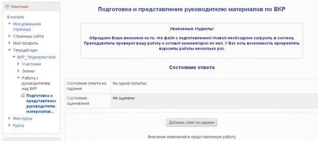 Задания могут быть в каждом курсе. Например, в ВКР - это отдельный модуль Заданий (рисунок)