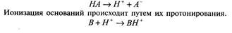 Ионизация оснований происходит путем их протонирования.