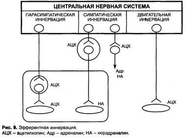 Общая схема эфферентной иннервации представлена на рис. 9.