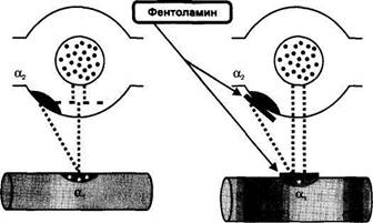 высвобождение норадреналина. Фентоламин блокирует постсинаптические