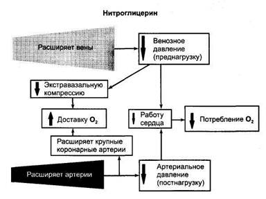 Рис. 42. Механизм антиангинального действия нитроглицерина.