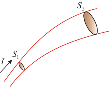 Из (7.3.1) и постоянства значения I во всех участках цепи постоянного тока следует, что плотности постоянного тока в различных поперечных сечениях 1 и 2 цепи обратно пропорциональны площадям