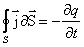 сквозь эту поверхность S равен электрическому току I, идущему вовне из области, ограниченный замкнутой поверхностью S. Следовательно, согласно закону сохранения электрического заряда, суммарный электрический заряд q, охватываемый поверхностью S, изменяется за время