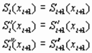 неизвестных коэффициентов полиномов. Условие дает нам n уравнений. Условие непрерывности функции и ее первых двух производных во внутренних узлах интервала дает дополнительно