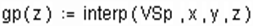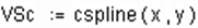 возвращает значение у(х) для заданных векторов VS, VX, VY и заданного значения х.