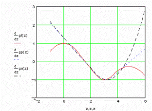 Рис.6 Сравнение производных (1-х и 2-х) сплайн-интерполяция