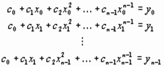 При глобальной интерполяции ищется единый полином для всего интервала. Если среди узлов { xi,yi } нет совпадающих, то такой полином будет единственным, и его степень не будет превышать n.