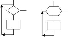 2. циклический. Используется для представления циклических алгоритмов. Описывается языком графических символов одним из двух способов: