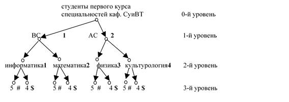 Пример 1. Выполнить последовательное кодирование для вершин третьего уровня классификатора из примера 1 раздела Иерархическая классификация. При этом использовать коды признаков, полученные при порядковом кодировании из примера 1 раздела Регистрационные методы.