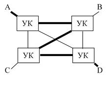 Пусть, например, есть многосвязная топология, ЭВМ в которой обозначены символами А, В, С, D (см. рисунок 3):