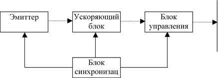 В эмиттере под давлением из сопла поступают чернила. Ускоряющий блок электризует и ускоряет капельный поток, при этом каждой из капель сообщается определенный электрический заряд. В блоке управления изменяется траектория полета капель с помощью отклоняющих пластин, а также выполняется включение и отключение струи. Блок синхронизации синхронизует работу остальных устройств.