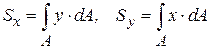 Статические моменты сечений относительно осей параллельных центральным осям определяются по формулам перехода к параллельным осям