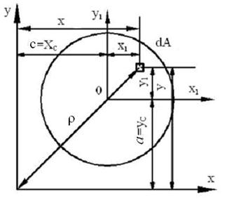 - алгебраическая сумма произведений элементарных площадок на квадраты координат их центра тяжести до какой-либо оси по всей площади сечения называется осевым моментом инерции площади сечения относительно этой оси.