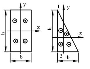 Для составных сечений площадь сечения, статические моменты и моменты инерции определяются как их алгебраическая сумма для простых сечений