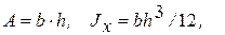 Геометрические характеристики прокатных профилей двутавра, швеллера, равнобоких и неравнобоких уголков и т.д. определяются из таблиц «Сортамент прокатной стали».