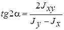Оси, относительно которых осевые моменты инерции достигают экстремальных, значений, а центробежный момент инерции равен нулю, называются главными центральными осями. Положение главных центральных осей определяется по формулам