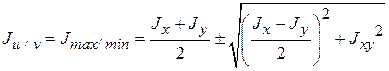 Моменты инерции относительно осей u, v, повернутых относительно осей х, у на угол